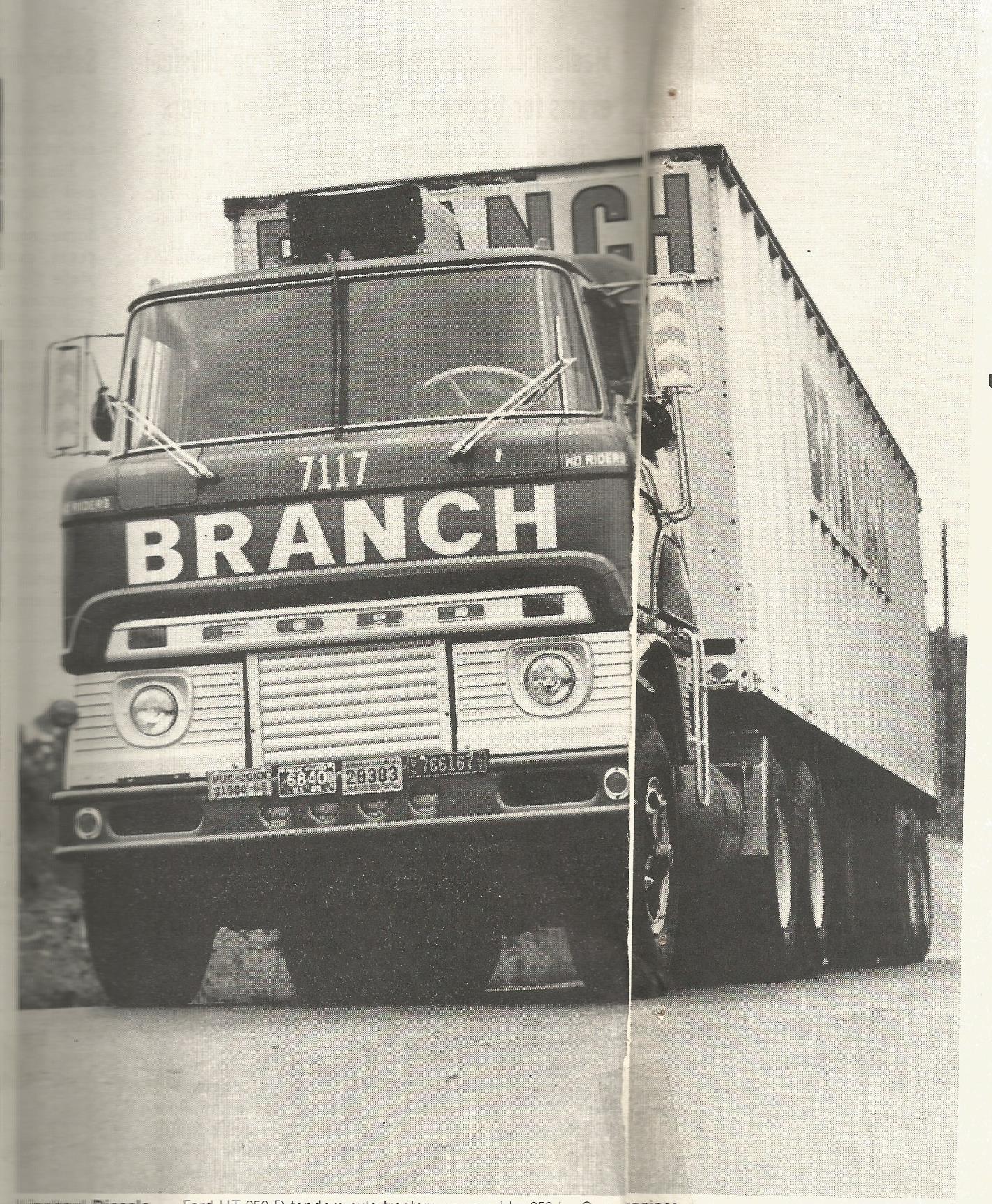 Photo is one of the linehaul units that operated out of the Greensboro, NC terminal of Branch Motor Express Co. This is tractor number 7117 and that same truck number would be used throughout the years as Branch replaced the fleet with newer trucks. After this Ford Ht650 they would use first generation Ford W-Series, then first generation GMC Astros, second generation Ford W-Series, White Road Commanders and finally Kenworth K series. All road units based in Greensboro were Cab Over Engine (COE) tandem axle tractors.