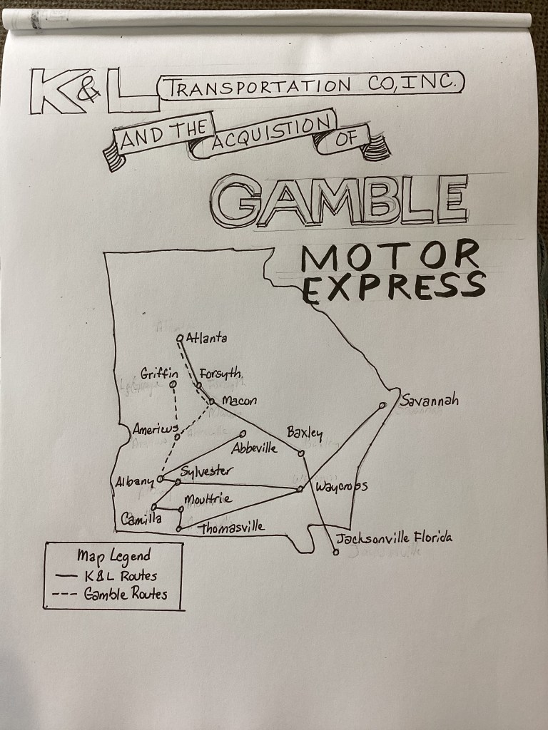 An agreement was reached with Gamble on April 22, 1936. K&L would purchase the property and operating rights of Gamble for $8,000. Gamble Motor Express had been in operation since 1929 and only in Georgia but with the desired Atlanta to Albany route that attracted K&L.
