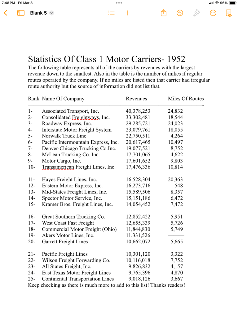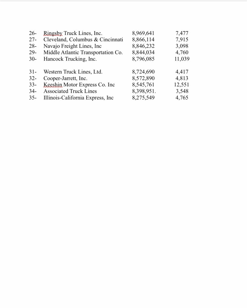 The Top Class 1 Motor Carriers In 1952 March 8, 2024March 30, 2024 EdCraddock Share this: Click to share on X (Opens in new window) X Click to share on Facebook (Opens in new window) Facebook Like Loading... Share this: Click to share on X (Opens in new window) X Click to share on Facebook (Opens in new window) Facebook Like Loading...